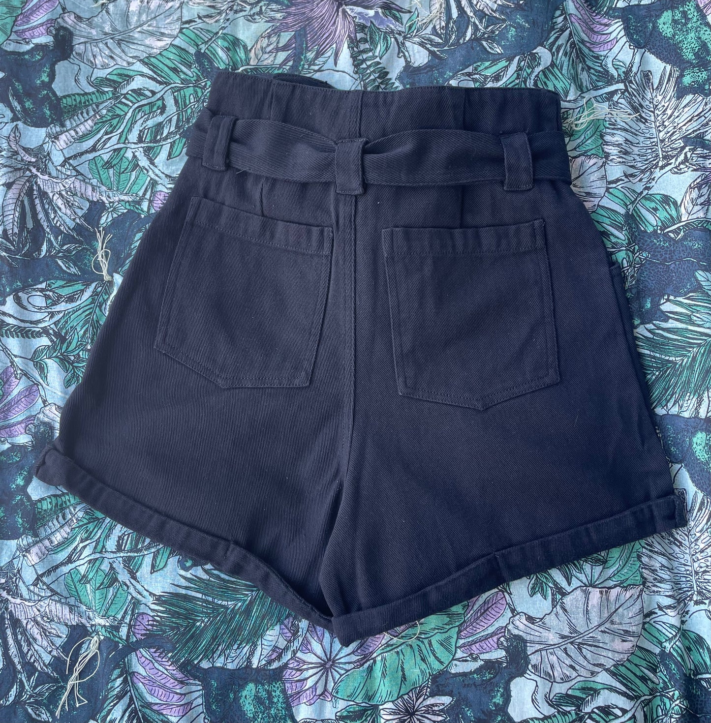 Short en jean noir taille haute ceinture à nouer, 100% coton